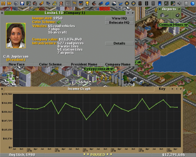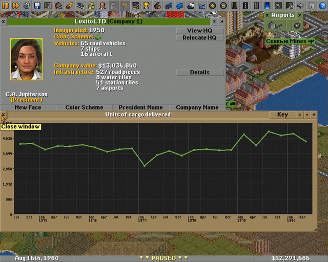 Загальна картина така, що компанія прибуткова. Налагоджено ланцюги перевезення автотранспотром. Опановано судноплавство й тегніку комбінованого підходу перемідення вантажу між складами. І найбільший економічний приріст забезпечили літаки, які прості в експлуатації. Лише дві точки й маршрут із них і буль куди швиденько бігають. А для товарів їх можна модернізувати. Як то із гелікоптерами, й золото доставляється до банку.