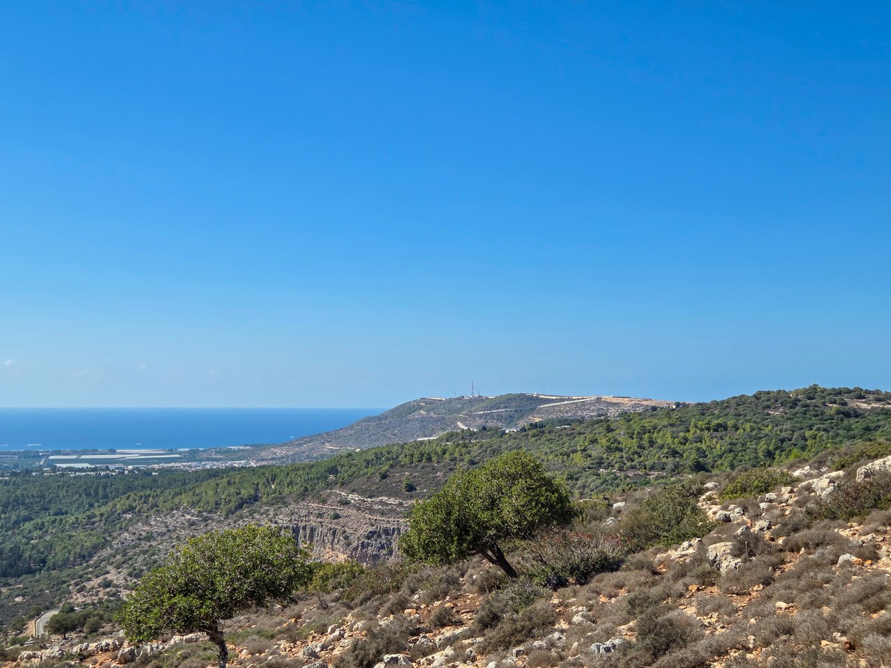 Людей було багато. Цілі сім’ї з дітьми йшли в нашому напрямку. Інші вже поверталися нам назустріч. Ми фотографували панораму, що поступово відкривалася з гори. Праворуч виднівся найпівнічніший край Ізраїлю — Рош ХаНікра. Далі — узбережжя, місто Нагарія, потім Акко, Крайот, а вдалині височіла гора Кармель, на якій розташоване місто Хайфа.