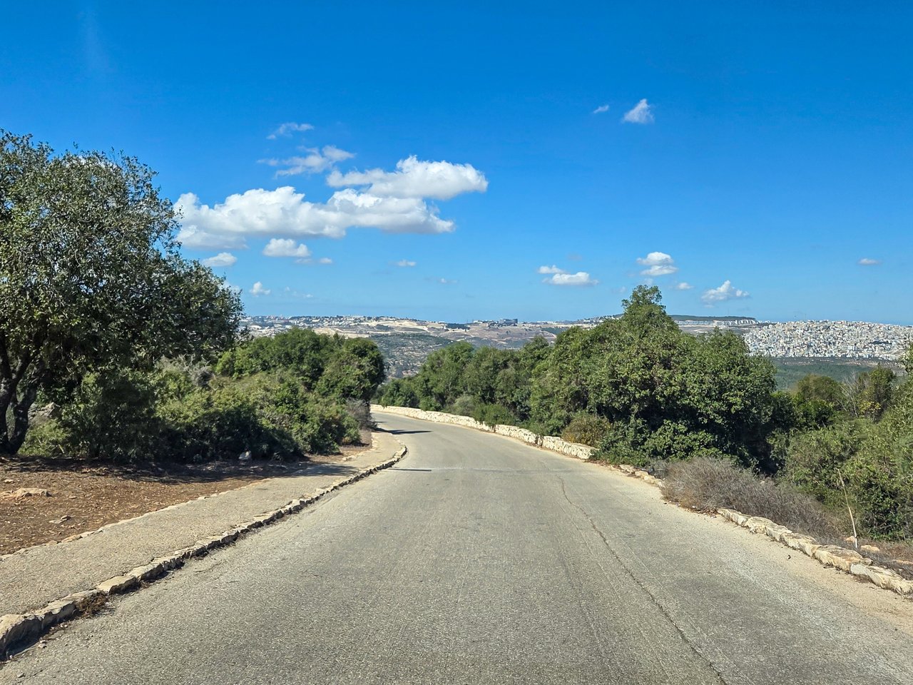 Отже, пункт призначення знаходиться на горі, підйом на яку являє собою звивисту дорогу з дуже крутими поворотами. Я отримую задоволення від такої їзди, а деяким людям у цей момент найбільше хочеться пройтися пішки. Після того як ми проїхали 2/3 частини пекельного підйому, вирішили пригальмувати на одному з поворотів, де була невелика площадка для тимчасової стоянки авто, а також вона слугувала оглядовим майданчиком, звідки відкривався чудовий вид униз на долину з сільськогосподарськими угіддями, серед яких виднілися арабські населені пункти, що найчастіше мають безпосереднє відношення до полів і плантацій навколо них.