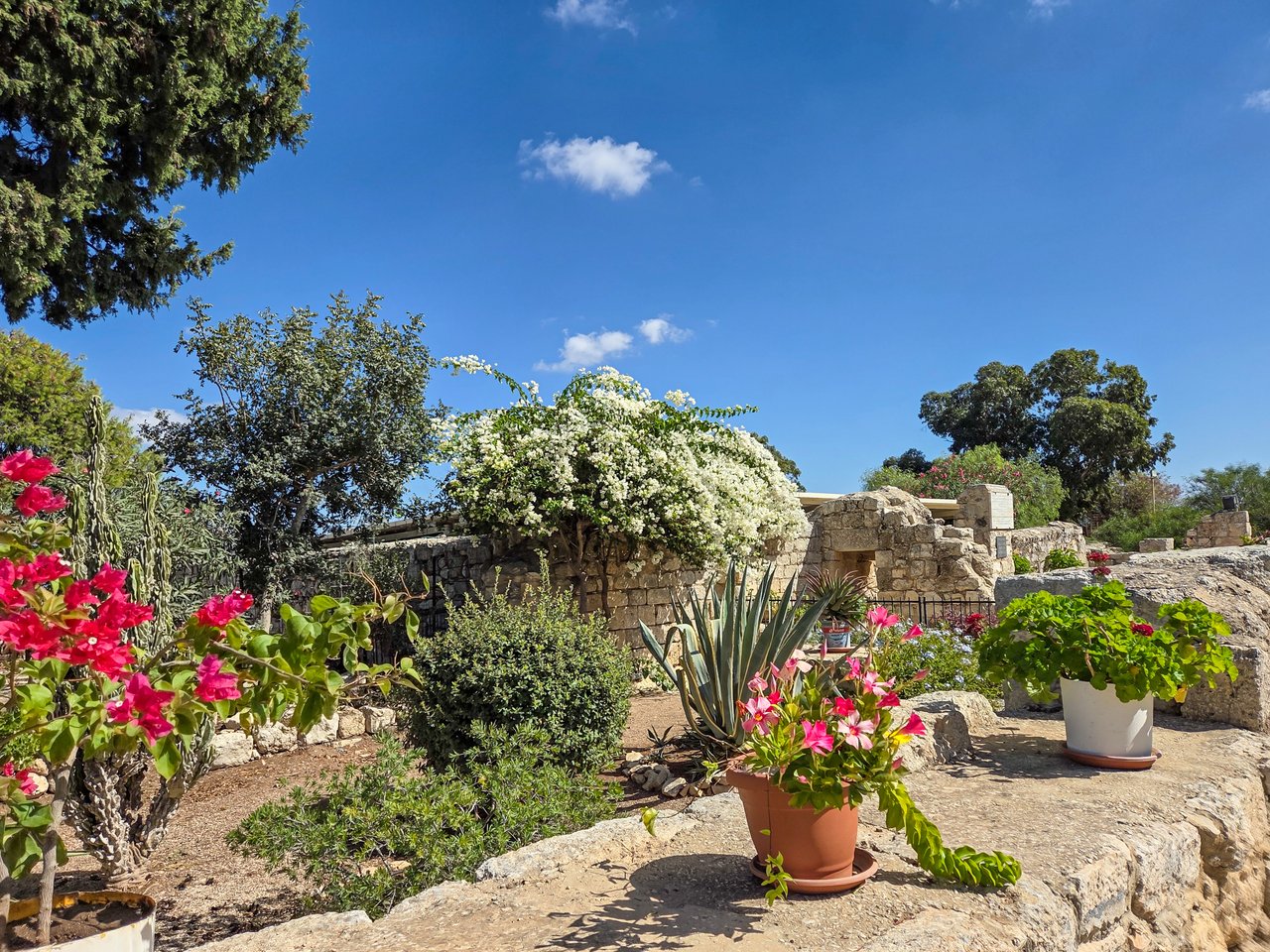 Біля входу до храму праворуч і ліворуч від алеї висаджені сади, багато рослин цвітуть, і загальна атмосфера досить барвиста. Більшість із рослин характерні для середземноморського клімату: тут ростуть кактуси, цвіте герань, вічноквітуча бугенвілія в’ється на паркани, а також безліч інших теплолюбних дерев і квітів.