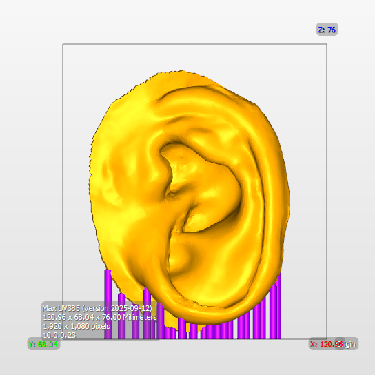 На роботі вже кілька місяців не було пацієнтів, для яких потрібно було би підготовлювати 3D-моделі для протезування обличчя. Але сьогодні це забуття було порушене, скажімо так, подвійним ударом. Пацієнтові потрібно було відсканувати вухо й око для подальшого протезування у лікаря. Ця людина колись давно дуже сильно постраждала під час пожежі. Він носить силіконове накладне вухо і очний протез із силіконовою частиною, що імітує повіки та брову. Моє завдання було відсканувати вухо і ділянку ока, підготувати 3D-моделі в комп’ютері й надрукувати для протилежного боку, де буде виконуватися протезування. Сканувати вухо дуже складно через його будову. 3D-сканування відбувається за допомогою променів світла, які ніби “нащупують” поверхню й передають інформацію в комп’ютер. Але оскільки у вусі безліч внутрішніх кутів (undercut), не всі зони можна захопити.