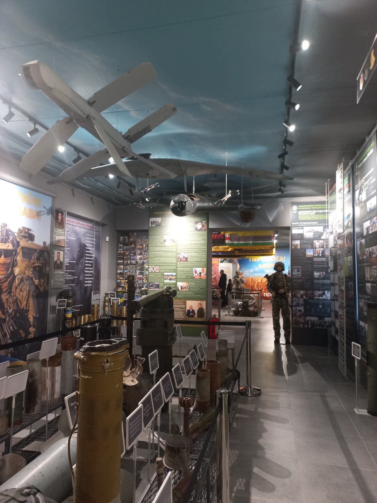 Отже роздивилася я різні види зброї якою нас луплять, фото досягнень нашого міста під час повномасштабної, та більш всього сподобалася зала де вшановують наших захисників полеглих.