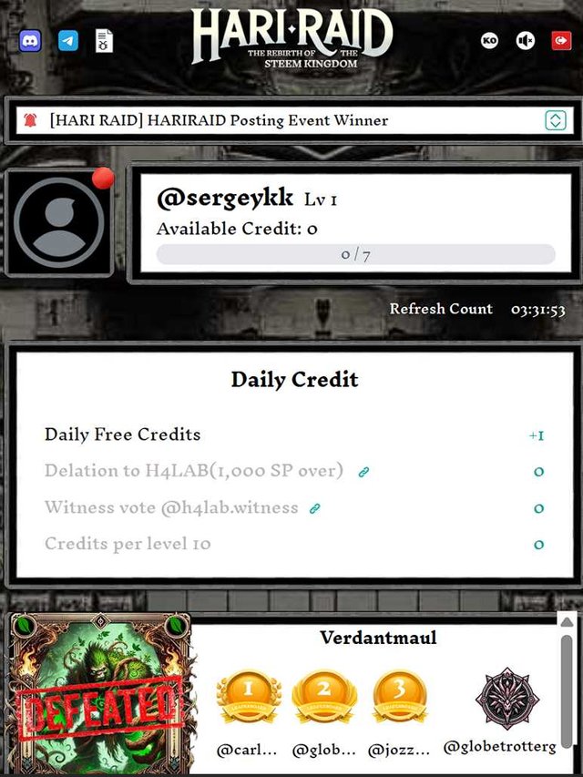 Delation to H4LAB(1,000 SP over) | +1 за делегацію 1000 |