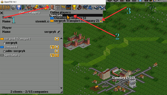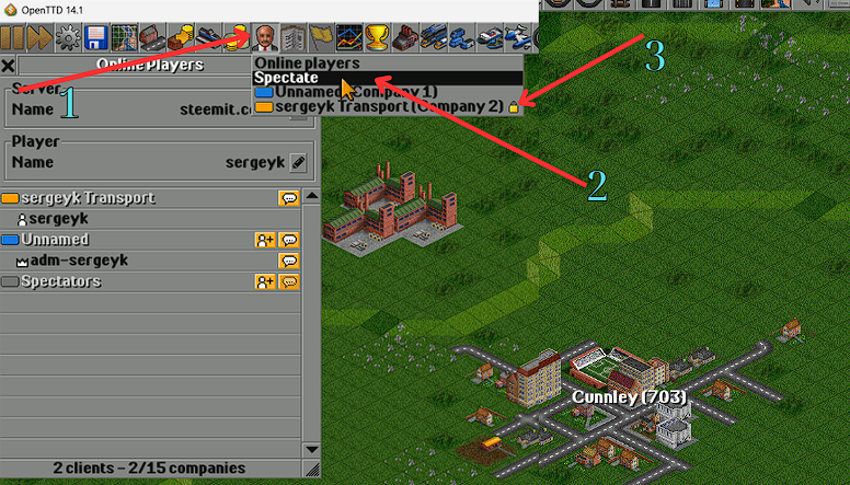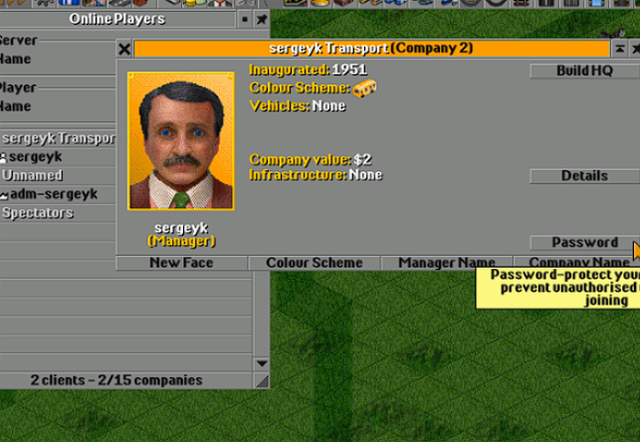(1) Clicking the face icon on the toolbar now shows a list of companies in the multiplayer game.