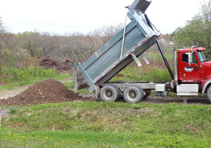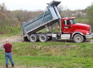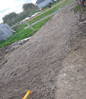 Our pit run gravel is finally here! :D It was supposed to be here last Monday or Tuesday, but when it still wasn’t here by Wednesday, I called the company and asked were it was. :D I spoke to the owner of the company and he assured me it would be here late Thursday or early Friday, both days came and went and still no gravel came. By Friday night my handsome husband was a bit miffed and told me not to call them anymore, we’d find a new company to bring some out. :D