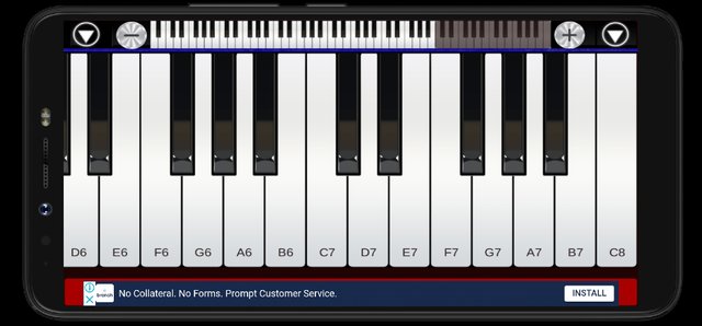 The name of the app is Real Piano. I was loving my time with this app until I used the Piano on Semitone app. The reason being that, I can't press three or more two keys at the same time. This is a different case with the Piano on Semitone. In fact, I was allowed to press the maximum number of keys my fingers could touch. I didn't expect this to happen on Real Piano because it's displayed in a horizontal orientation style, making it look like a real Piano as its name claimed. Below is a screenshot showing how it displayed when launched.