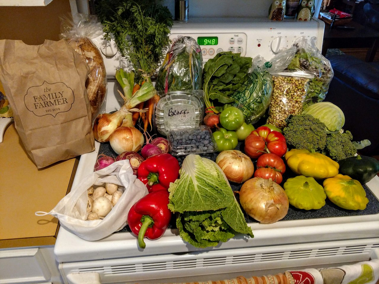 The next morning it was time to head back over to hit up the farmers market as usual! Though the farmers are having a bit of a tough time with the current drought we are in, they are busting their humps to keep everything irrigated and healthy to bring the best produce around for us to enjoy. We're in that wonderful in-between time now where there is still some of the spring varieties producing their last little bit, but also the summer stuff is coming in hot!