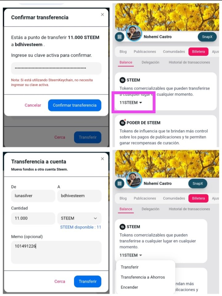 Luego, tuve que ir a otro editor en steemx para transferir. Con la plataforma steemit no me permitió realizar la transferencia a Binance. Coloqué el resto de los steem que quedaron, confirmé y listo.