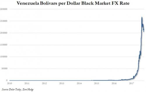 And, as Bloomberg previously concluded, people like Bremmer Rodrigues, 25, who runs a bakery on Caracas’ outskirts, are at a loss over what to do with their bags of bills. Every day his business takes in hundreds of thousands of bolivars, which he hides around his office until packing them up in boxes to deposit at the bank. He says if someone looked in on him, he might be mistaken for a drug dealer..