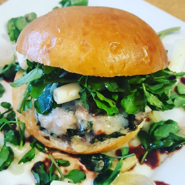 Lei è Bella Venison Burgertoomuchcoffee (40)in #venison • 8 years ago (edited) What to do when your roommate brings home venison! Venison Bella Lucia Sun Dried tomatoes stuffed burger. With brown butter sauce sauteed white asparagus and onions topped with Watercress in a cherry balsamic reduction. #food #life #chef #foodphotography