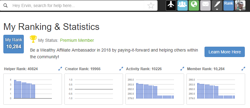 Ps: to make my progress measurable I will use the Wealthy Affiliate rank. My rank today, on January 2nd 2018, is 10,284. If I remember correctly it was below 300 in better days. I will be there again. It's a promise!