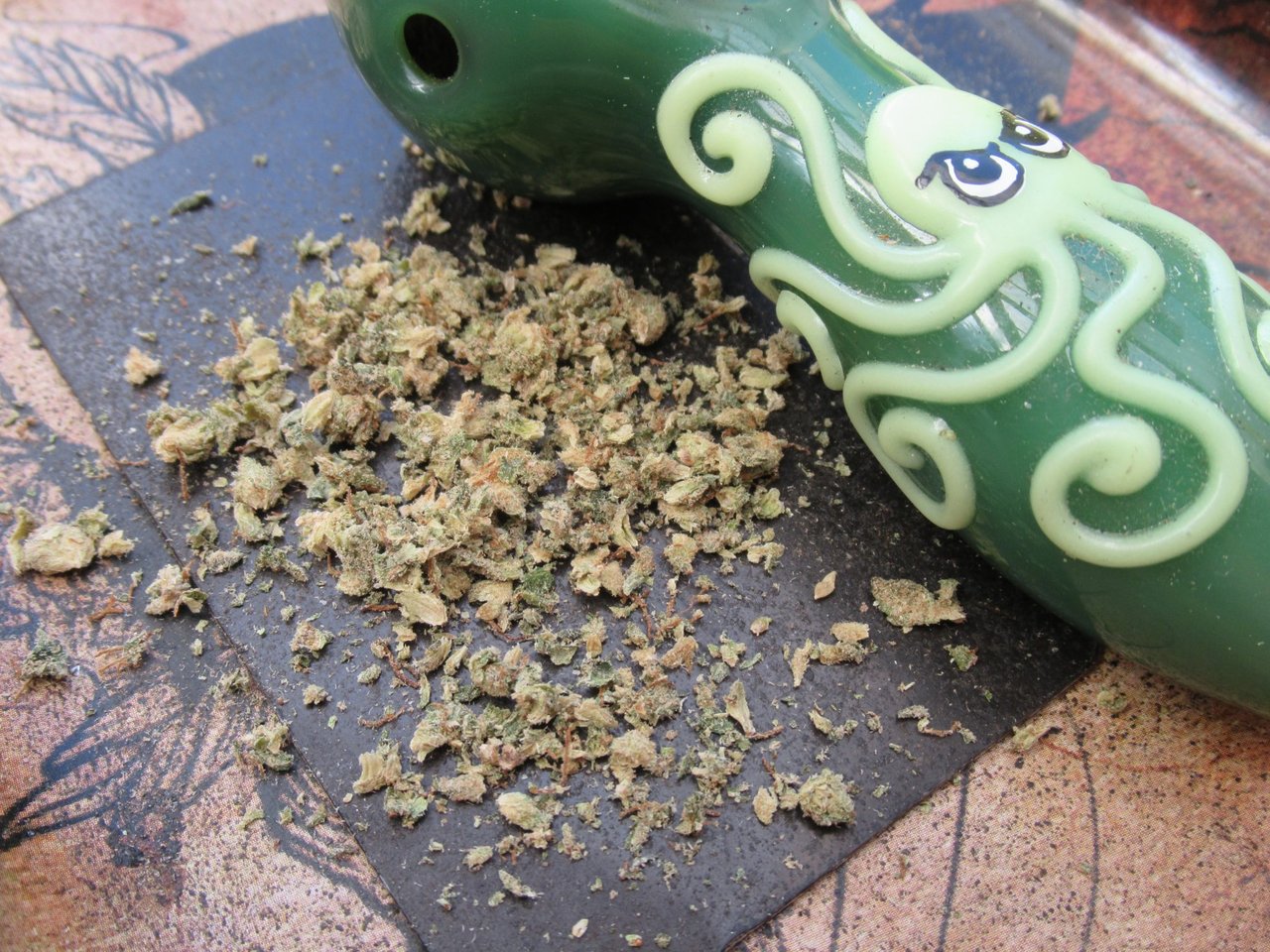 I reached for the Octopus glow-in-the-dark bowl for the Madonna Kush bud tokes.