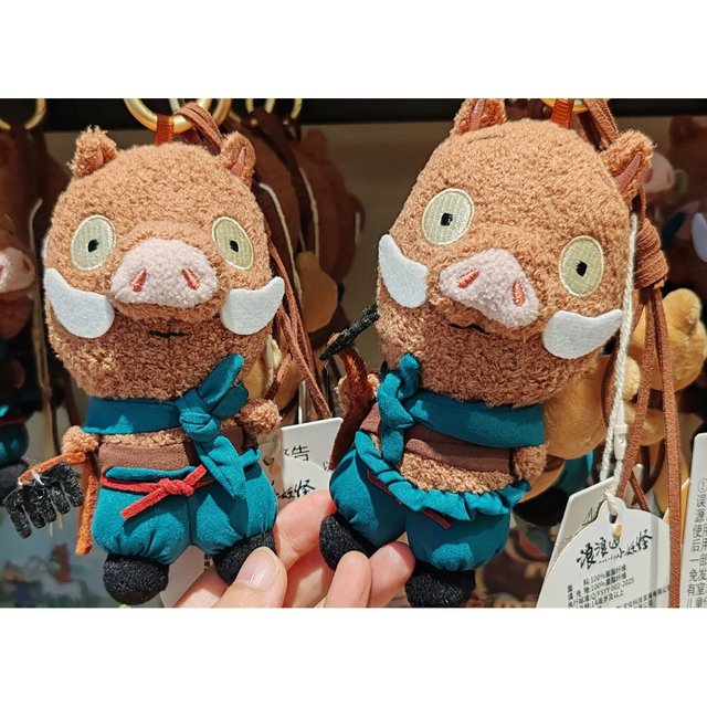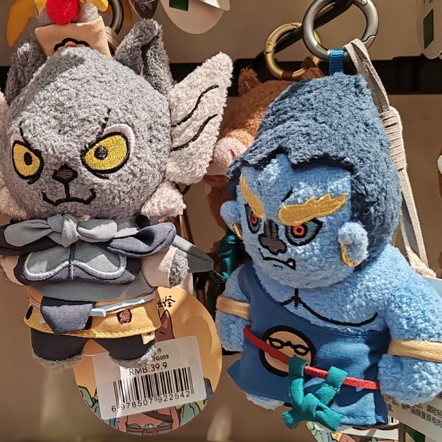 然后看到了很多有关浪浪山的同名周边,有冰箱贴、有玩偶、还有布娃娃,各种形象还是挺多的。里面居然还有几个反派角色的洋娃娃也在里面挂着,还是挺可爱的。