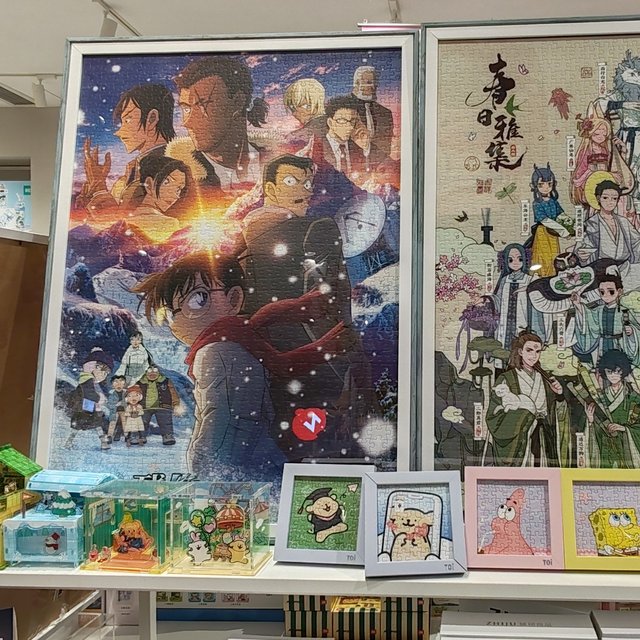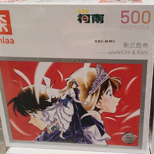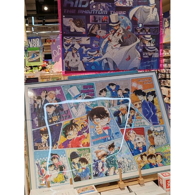 发现精品店里面的布局又有了变化,还引进了很多大大小小的玩偶和其他物品,其中比较吸引我的是柯南相关的拼图。里面有一款1000块的拼图,对应的是今年才上映的最新剧场版——《名侦探柯南:独眼的残像》。
