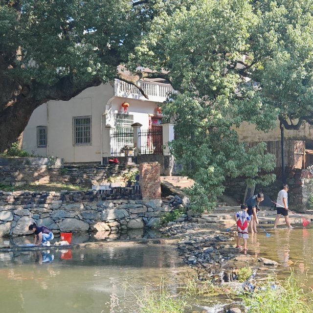 风从河面吹过来,带着水汽,老樟树的叶子晃了晃,影子在水面碎成一片。没人刻意说话,只有洗衣的捶打声、网兜撩水的哗啦声,混着夏末的热意,慢慢浸在这寻常的日子里。