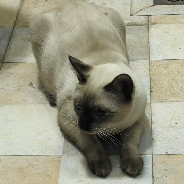 国庆前最后一天上班吧。孩他爸在单位没事干就在闲鱼上浏览。看到一只5-6个月的暹罗要出售。他看我心里难受,就和卖家聊了,那猫也是八百卖给我们。卖家离老妈那里近,在上虞,我们就打算去老妈家里时再过去。今天下午就过去了,卖家买来时两千呢,为什么不养了?他说是他孩子买的,买来不养了叫他养,他觉得麻烦就挂闲鱼上卖。我们去抱来时,当时觉得它好大好白,也没想太多。回到家后越来越觉得它好像不是海豹重点色暹罗,它和我家咪咪不太像,外形像的就是很大。颜色不像。我们没经验,只能问孩他伯,他说这暹罗是串串。我们又去问另一个朋友,他说是暹罗。被他们俩讲得迷糊了。我们就上网看图片,觉得它是蓝重点暹罗。但是蓝重点暹罗尾巴好像还要深一点。我们又觉得是不是他都没经过冬天,所以它不黑,真的是看看猜猜想想,越来越觉得看不懂它了。