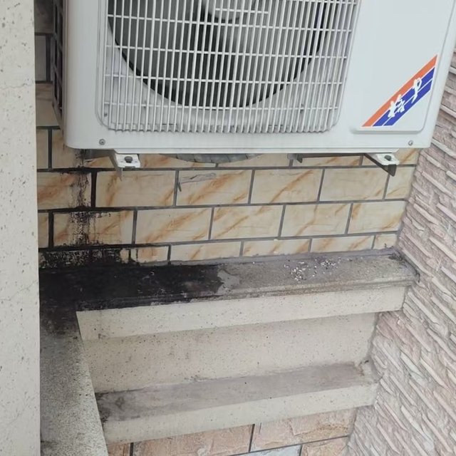 最后把空调安装回去,还好,没忘怎么装。把空调开起来到室外去看看有没有水滴下来。外机的塑料管估计是因为时间久了都老化掉了。那些脏水都在房檐上,很脏很脏。看外机在滴水就应该好了。但空调还是继续开着,要看看室内机还会不会滴水。开了三个小时没看到内机滴水,那样这次就算是修好了。