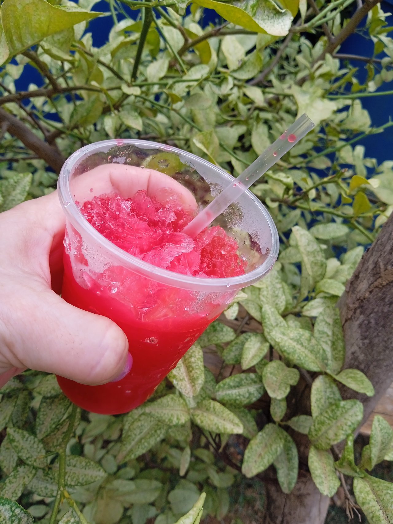 Saludos, feliz noche y hoy les muestro estás fotografías de un refrescante raspao venezolano, la cual es como un helado hecho con hielo raspado o granizado, la cual se le agrega un jugo en este caso sabor kolita, y leche condensada por encima, estaba muy caluroso, así que de una vez lo probé y luego tome la fotografía, por eso no estaba por encima del vaso, estaba súper refrescante, Yo lo conozco como raspao, Pero hay otros lugares del país donde lo conocen como cepillao y también como granizado. isla de Margarita, Venezuela.
