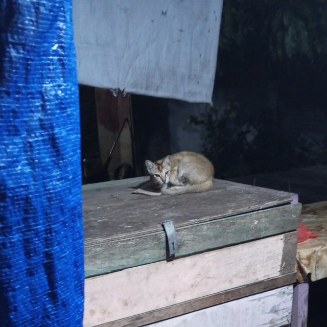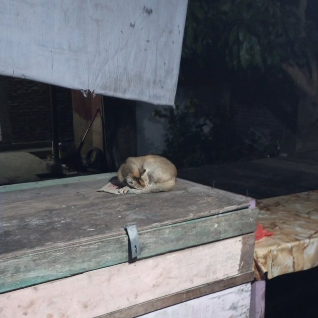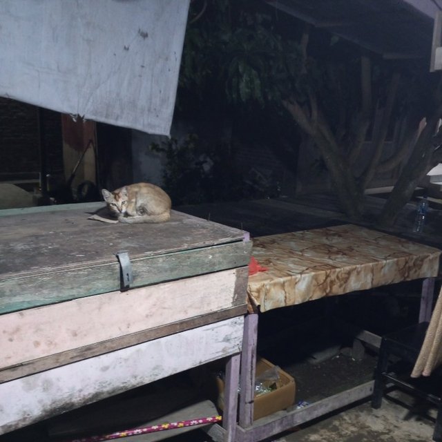Kali ini saya akan membagikan beberapa gambar yang saya ambil tadi malam saat pulang dari warung kopi. Seekor kucing tampak sedang menikmati waktu istirahatnya diatas meja kayu. Awalnya si kucing tidur sangat nyenyak, tapi tiba-tiba dia terjaga karena mendengar suara motor saya yang keras ketika saya hidupkan. Seketika kucing itu melihat ke arah suara motor, tapi tidak sampai melompat dari meja dan lari. Setelah itu dia kembali melanjutkan tidurnya, diiringi suara jengkrik dan suara burung hantu yang sering terdengar diwaktu malam.
