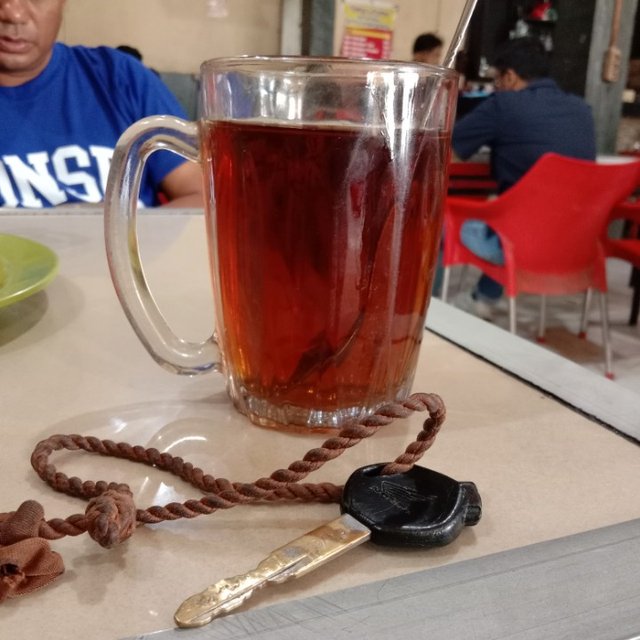 saya dan teman-teman duduk bersama di warung untuk minum pagi, saya tadi cuma memesan minuman teh hangat untuk saya minum, memang bagi saya air teh sangat enak dan nikmat teman-teman wherein Indonesia.