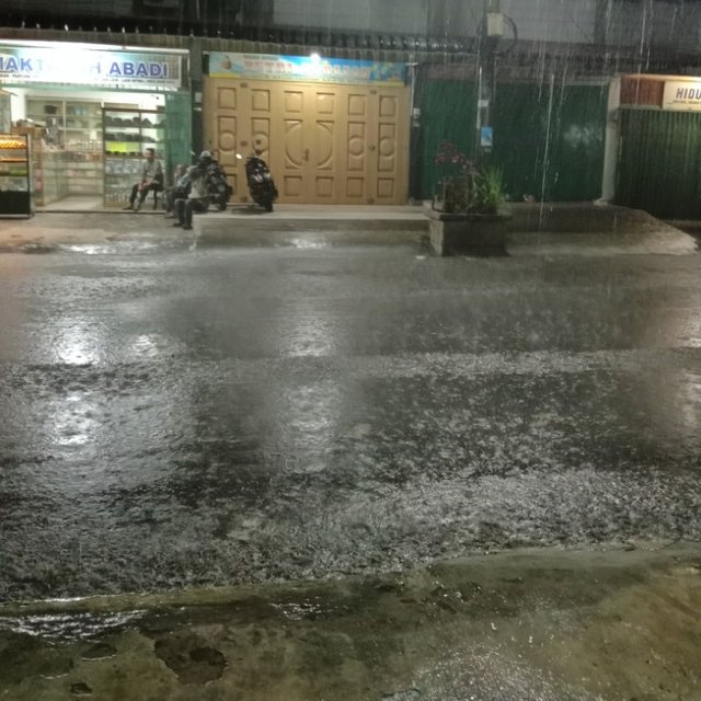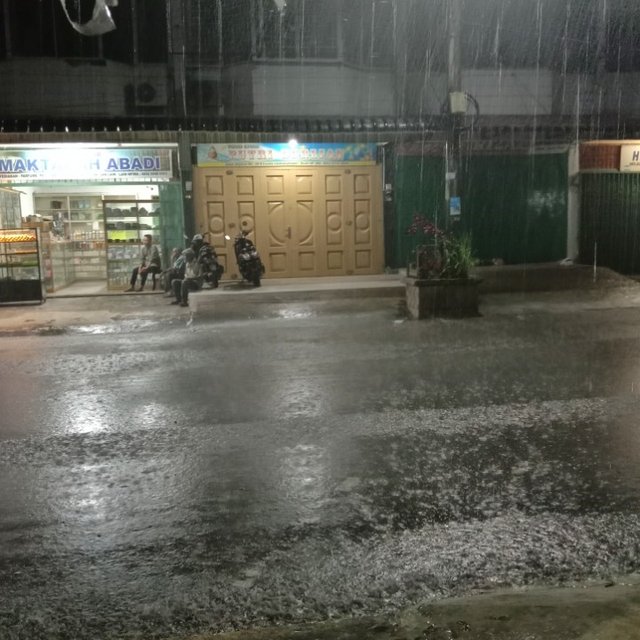tadi malam sekitar jam 08.00 hujan turun sangat deras sekali di daerah kami yaitu Lhokseumawe Aceh Indonesia teman-temanku semua, begitu hujan turun saya mencari tempat untuk paling aman berteduh supaya tidak terkena air hujan yang turun dari langit semalam teman-teman steemit ku semuanya.