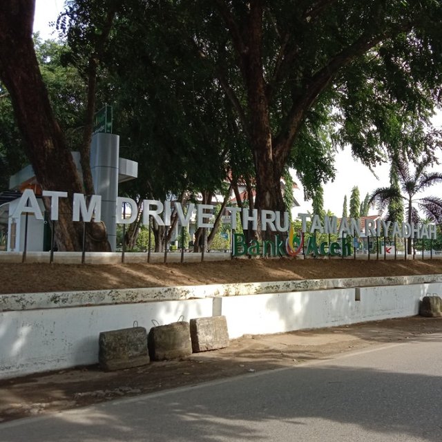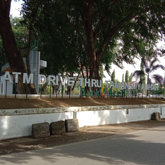 sekarang di taman Riyadah ada dibikin ATM bersama oleh pihak bank BPD Aceh, jadi semua masyarakat yang memiliki ATM BPD Bank Aceh bisa mengambil uang di ATM tersebut teman-teman wherein Indonesia.