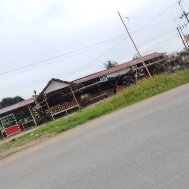 postingan saya kali ini adalah foto yang diambil dari tepi jalan raya, menunjukkan sebuah area di pinggir jalan yang merupakan tempat usaha atau warung makan dan kopi,