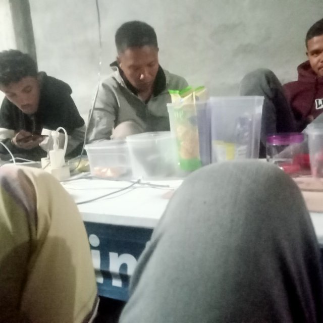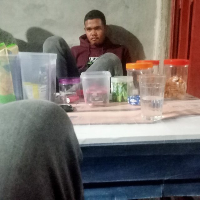 kawan lagi sibuk main hp sambil menunggu kawan satu lagi untuk di ajak main geme domino
