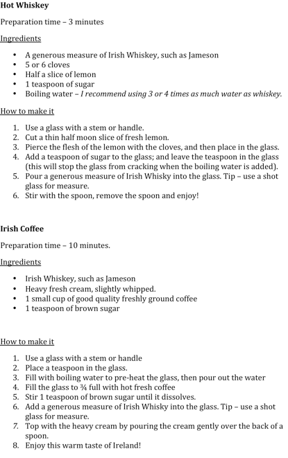 Are you looking for a warm and snug winter's drink?! Please see two wonderful recipes for two of my favourite hot drinks, involving whiskey!