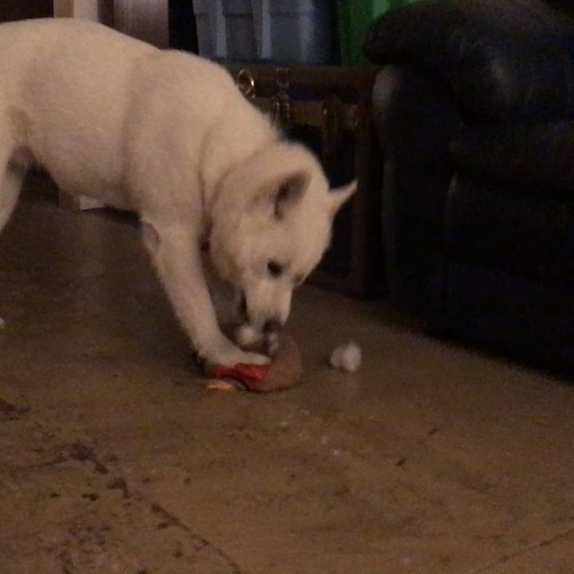 She loves squeeky toys #whitedog #share2steem #sokalfarm