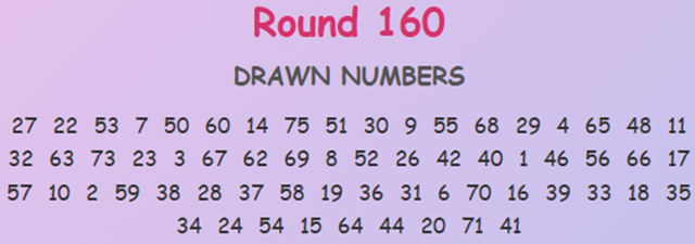 Now, without further ado, here are the numbers called in round 160, and the list of the winners of this contest: