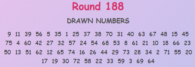 Now, without further ado, here are the numbers called in round 188, and the list of the winners of this contest: