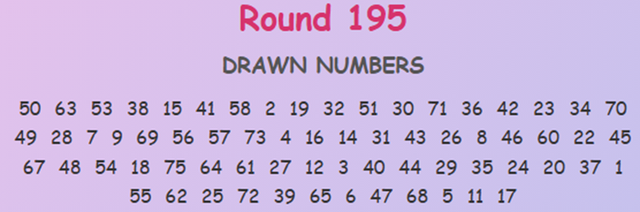 Now, without further ado, here are the numbers called in round 195, and the list of the winners of this contest: