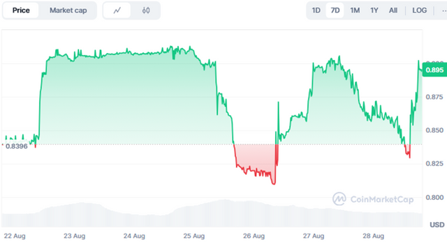 As of this moment, 20:00 Hrs on 28/08/2025 the Steem value is $0.134, and the Steem Dollar value is $0.89. this information is taken from the CoinMarket page.