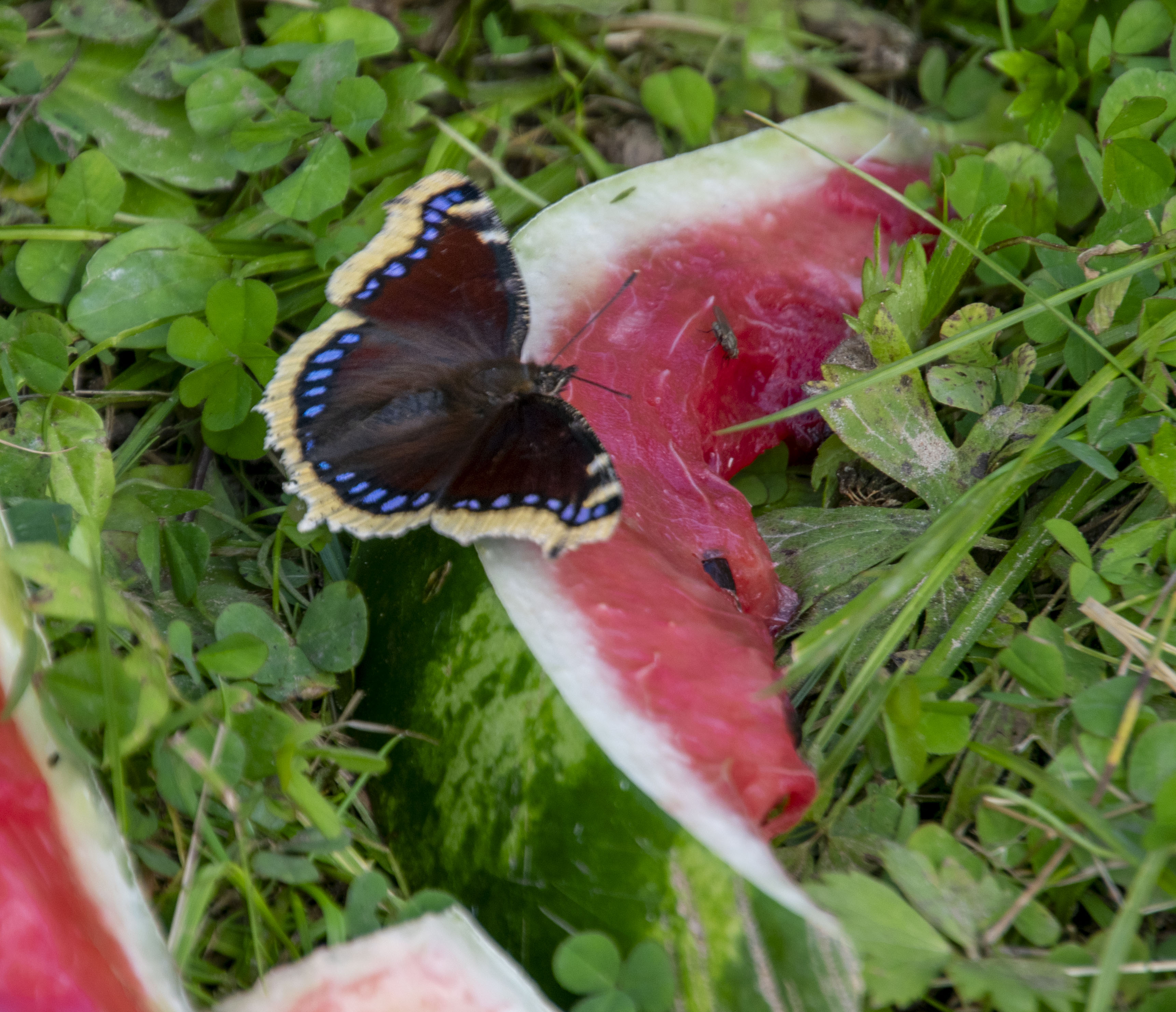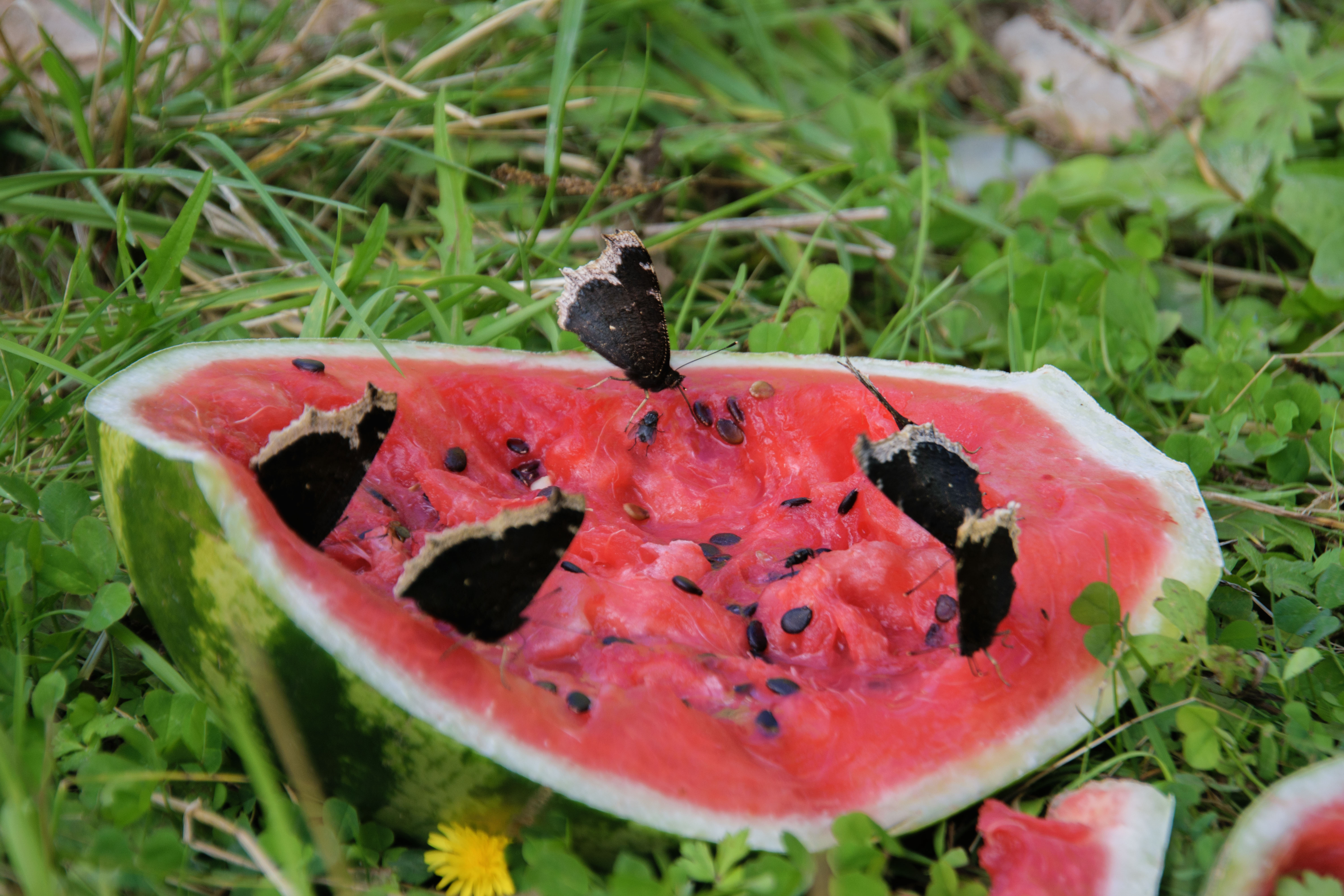 What do butterflies eat? I've always believed that butterflies eat the nectar they use their proboscis to find in the flowers. But this year I've reconsidered my opinion about butterfly nutrition. They are very fond of sweet juices and can even eat watermelon!