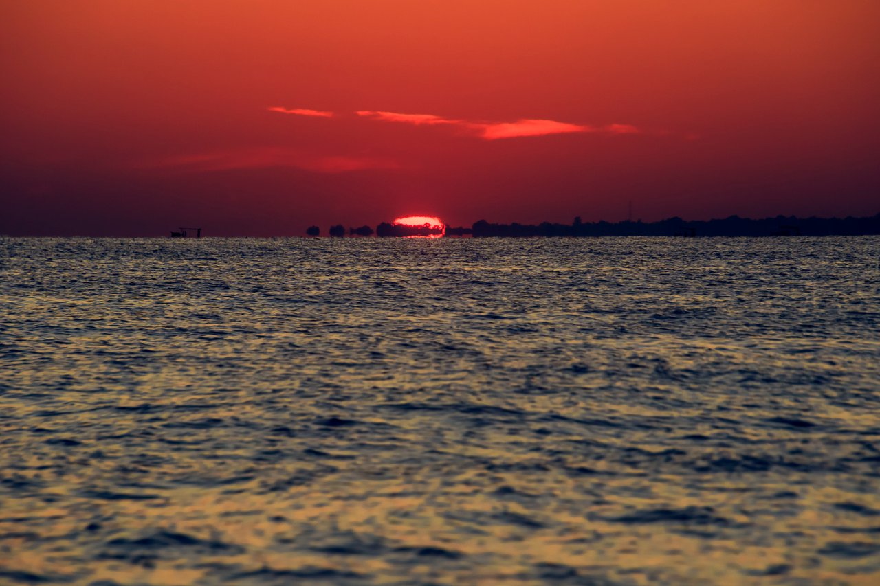 A very beautiful view of the sunset and the sea is very clear with a very beautiful calm