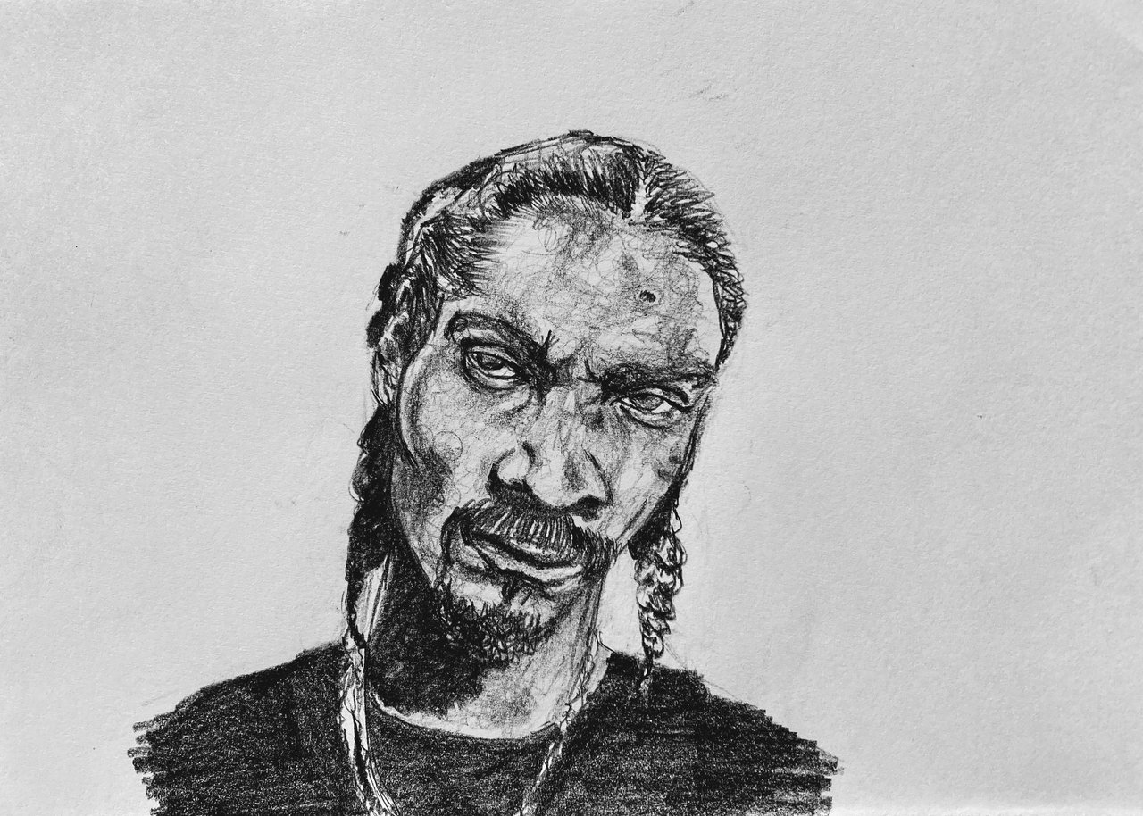 Just as promised, I share with you the wonderful piece I made yesterday. This is the first time I’ll be making a portrait of Snoop and so I wasn’t afraid of going deep as regards the tones. The sad thing was I didn’t realized the eyes were misaligned till much later. I think it’s an aftermath of my sitting position at the time of the sketch.