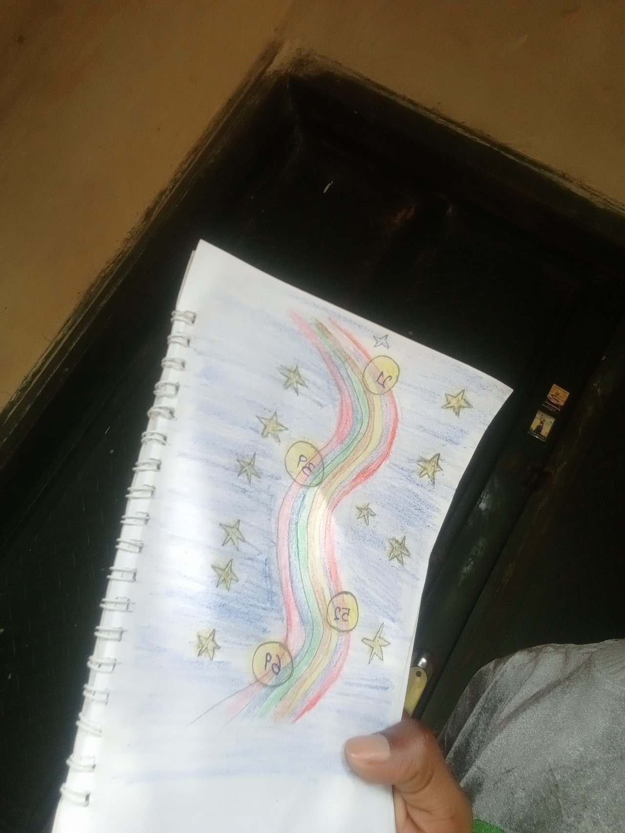 The above drawing is a colorful representation of the path of fortune. It is a winding rainbow 🌈 trail with stars indicating some of my predicted numbers on it. Each of the numbers that is drawn inside a circle placed on top of the rainbow is a symbol of hope and luck. In the drawing, the upward paths represent growth and positivity as they connect to the next numbers below.