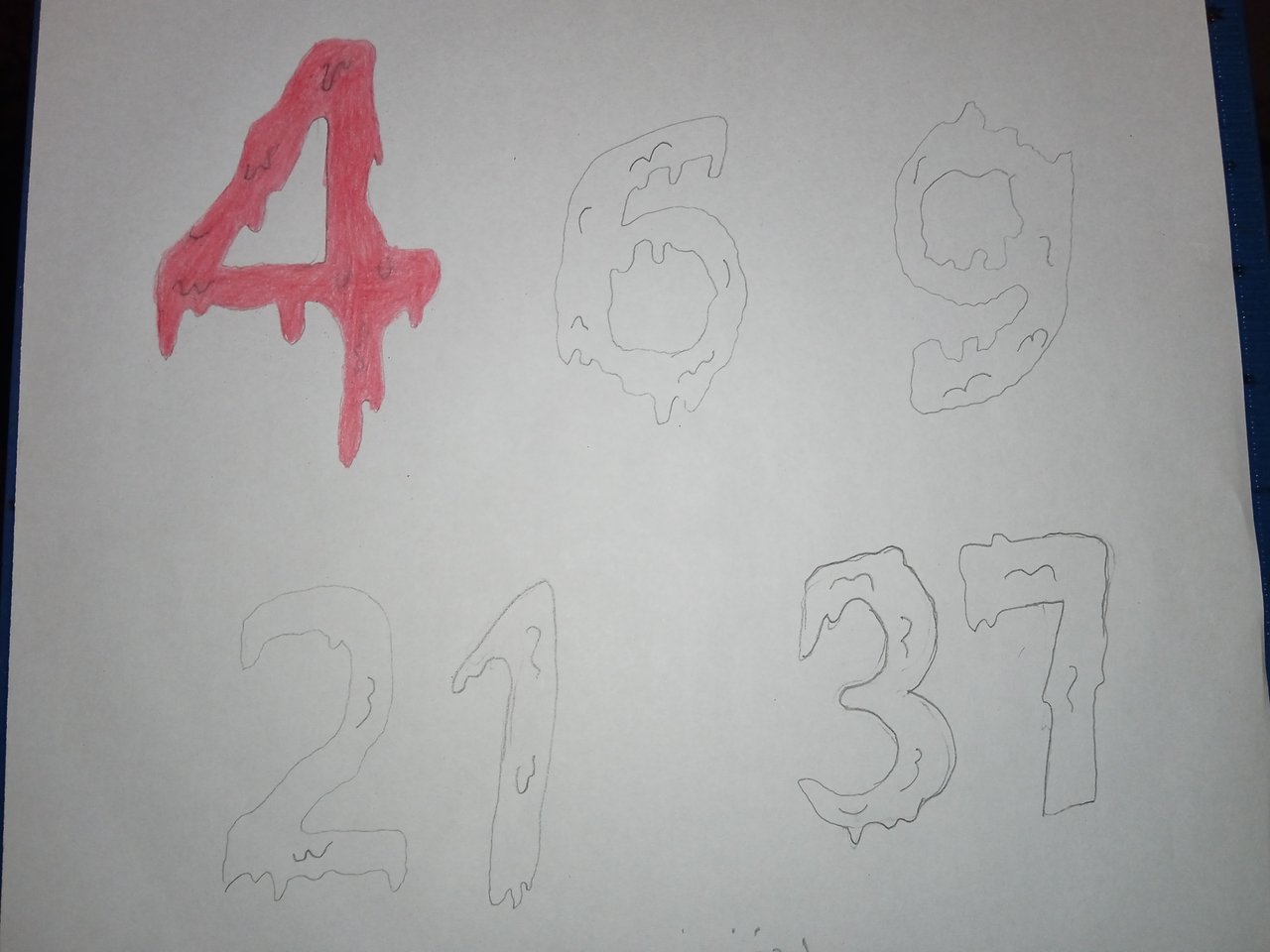Después pinte los otros números utilizando los colores para hacer un degradado y de esa manera hacerlo más aterrador, le agregué unos detalles más y a continuación le mostraré el resultado.