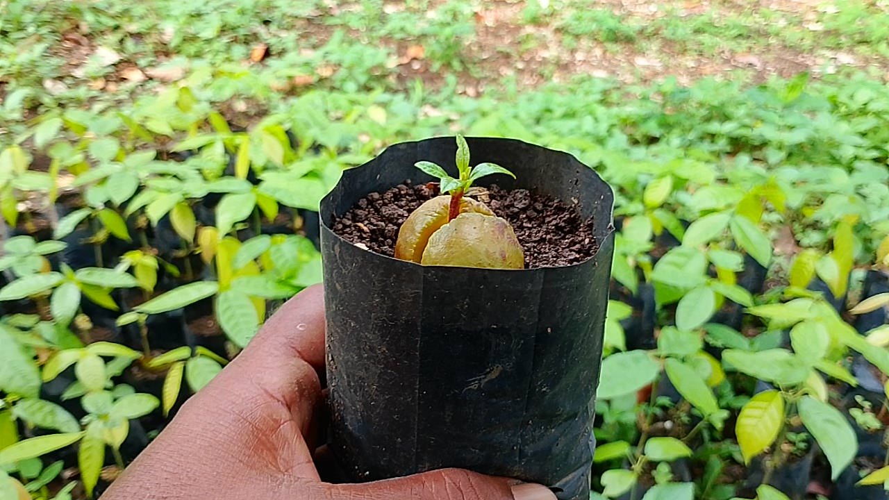 Today, I want to show Steem users a fruit that's beneficial for real-world consumption: avocados. I originally bought this fruit from the market, intending to eat it myself. My daily stomach aches, coupled with persistent health issues, prompted me to collect the remaining seeds and experiment with planting and sowing avocado seeds in small polybags left over from sowing clove seeds. To prevent the same illness I experienced, and to prevent the avocado seeds from going to waste, I tried sowing them using the same technique, using two ingredients in one planting medium: