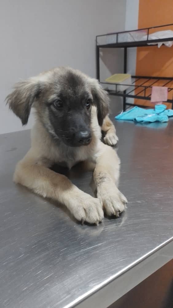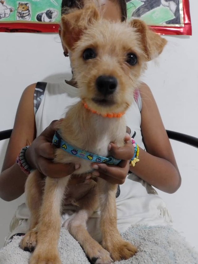 Le tocaba el refuerzo de la vacuna y la desparasitación, se portó muy bien, a pesar de su carita de asustada, ella fue rescatada con varios hermanitos y felizmente encontró un buen hogar.