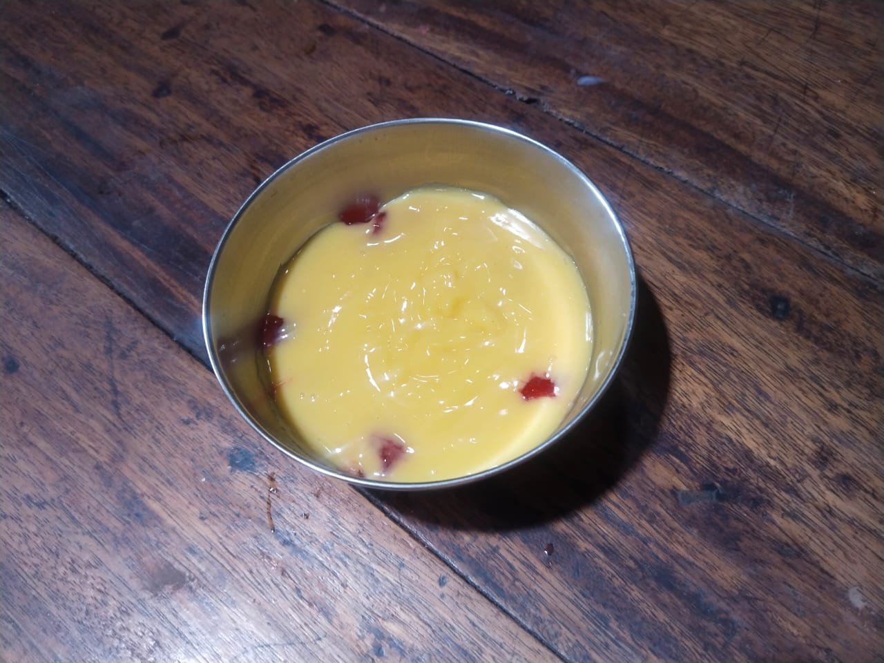 Another difficulty in preparing this recipe was the expiration date of the ingredients. So when I opened the jelly packet, the jelly powder had a strange color and a lot of granules. So I remembered the difficulty in finding these ingredients. But I wanted to taste the taste of this dessert so I added fresh jelly. So I went to a distant store and bought the jelly packets again. So my effort was successful. So I was finally able to bring these jelly packets and prepare this pudding. So I was finally successful in the midst of a lot of difficulties.