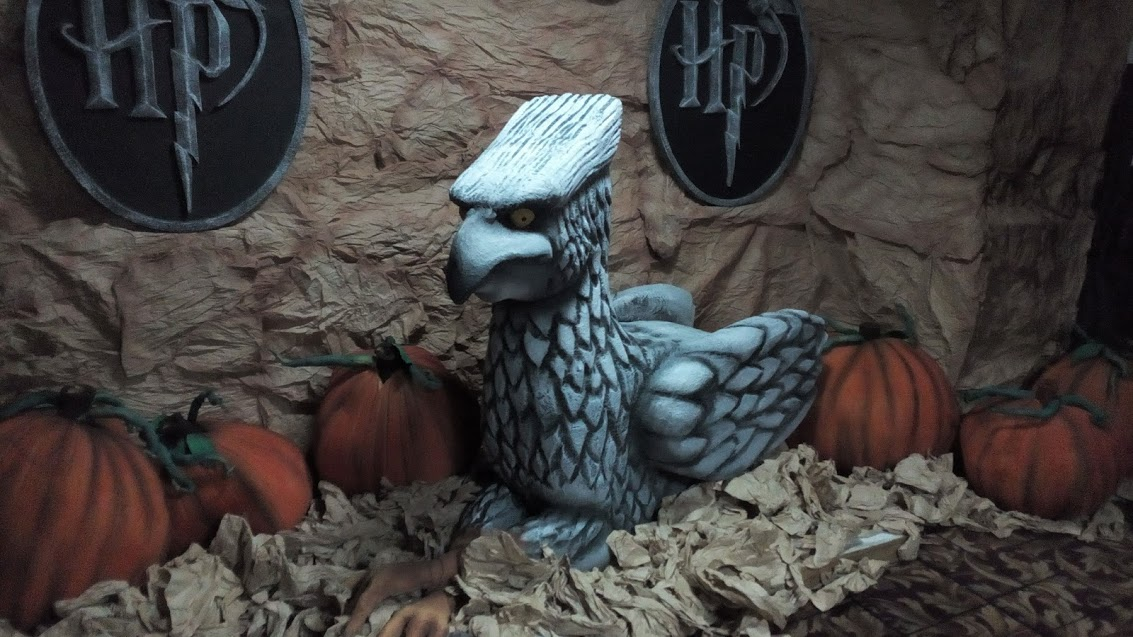 Entre las figuras que les menciono están el famoso fenix de Dumbledore, el hipofrigo con las calabazas, Dobby con media, el cáliz, los símbolos de las casas, la escuela Hogwarts.
