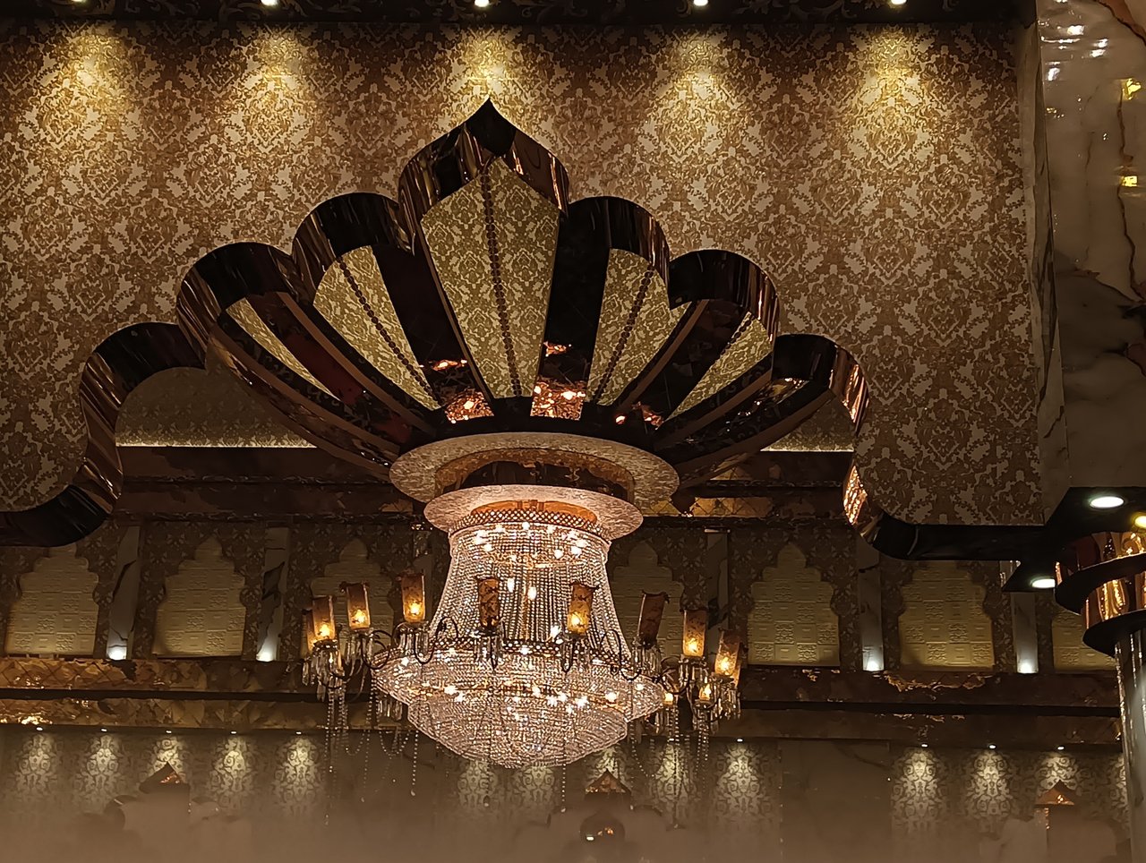 "এই চিত্রটি হলো প্যান্ডেলের ভিতরে যাওয়ার গেট। ভিতরে প্রবেশ করতেই চোখে পড়বে বিভিন্ন লাইটিং এর ঝাড়বাতি। আর ভেতরটি সম্পূর্ণ গোল্ডেন কালার দিয়ে সাজানো হয়েছে"।