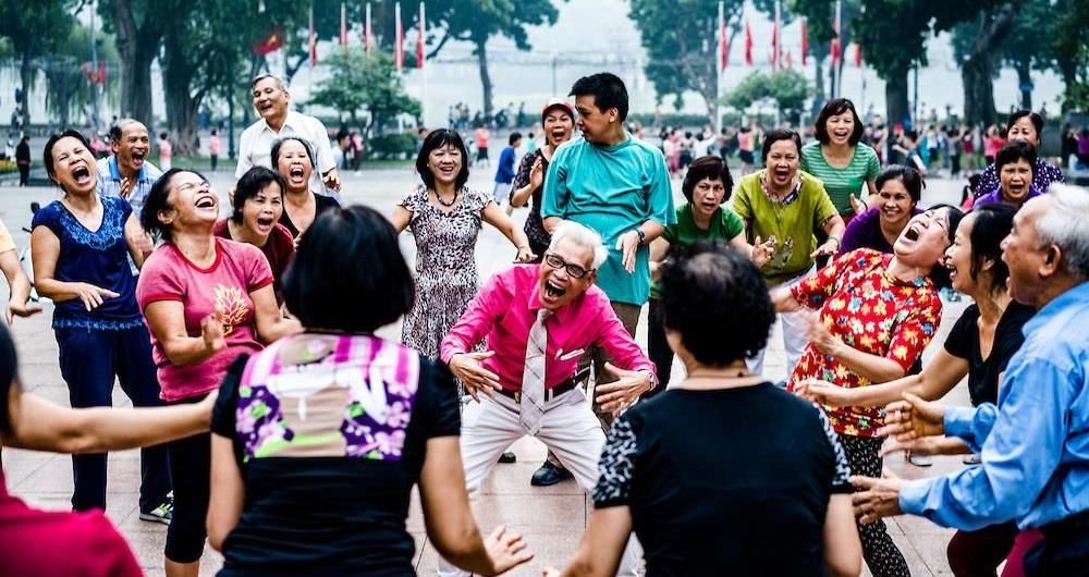 Everybody laughs when things go down. Laughter yoga teaches you to laugh without reason in difficult times. Regardless of conditions, it helps people to fight by maintaining their positive mental attitudes.