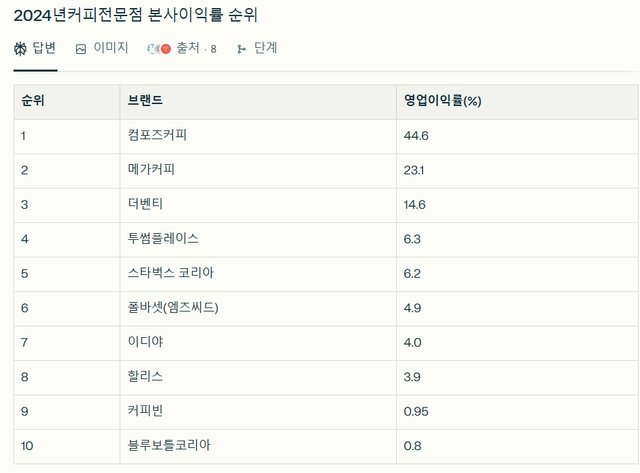 여러가지글을보다가 커피전문점 이야기가 있어서 본사이익이어느정도인지살펴보았습니다