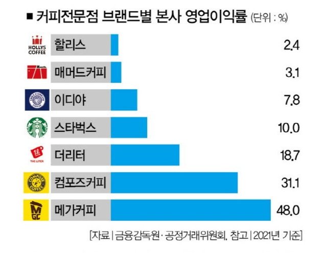 공정위나 정부에서 집계한게 아니라 검색한거지만.여튼 저가커피전문점의 본사 이익률이 엄청납니다,